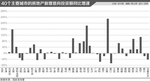 从今年6月份开始,国家发改委定期发布这一报告,至今已发布五期。而10月报告则是首次公布40 个主要城市的房地产新增意向投资额同比增速。