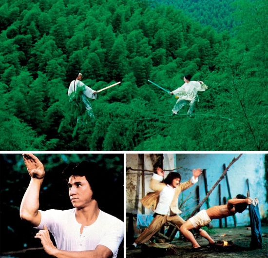 上图:电影《卧虎藏龙》剧照 下左图:电影《蛇形刁手》剧照 下右图:电影《醉拳》剧照